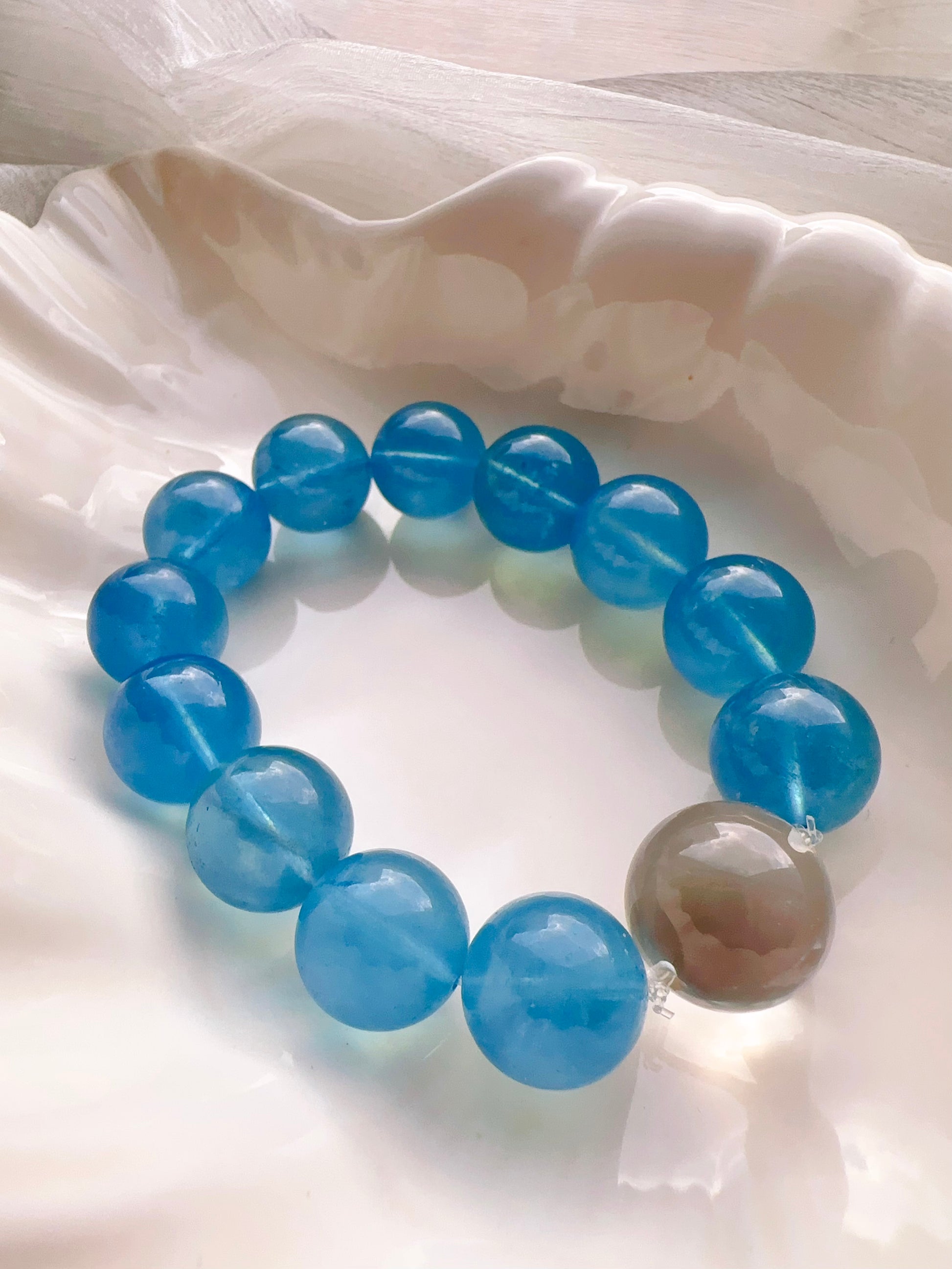 Clear Quartz (Metal) embodies clarity of mind, while Aquamarine (Water) carries the wisdom of flowing tides. Together, they create harmony like the breath of heaven and ocean — a reminder that true serenity arises when clarity meets gentle flow.