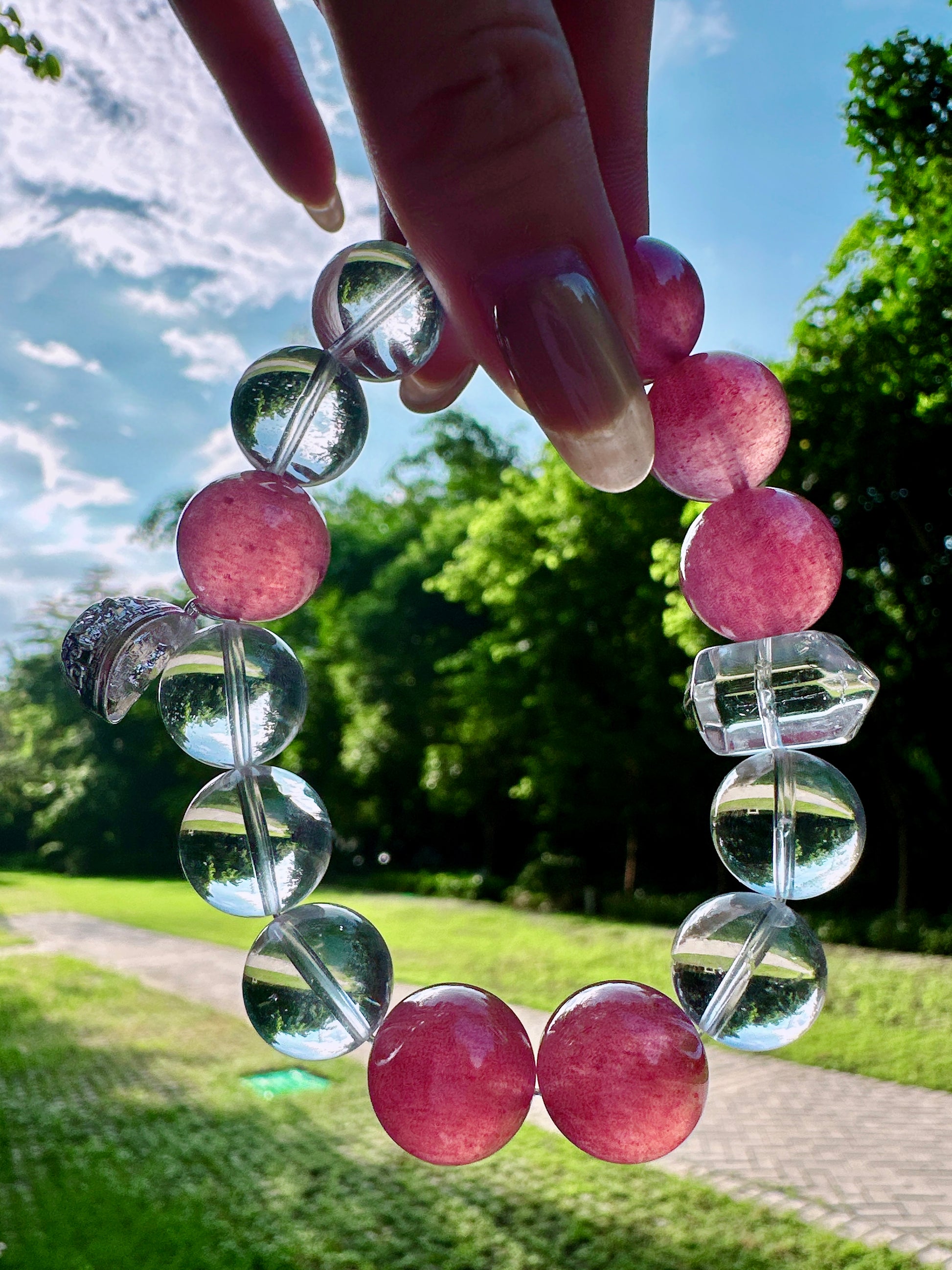 Sparkling like scattered stars across the river of love, Strawberry Quartz glows with romantic sweetness.