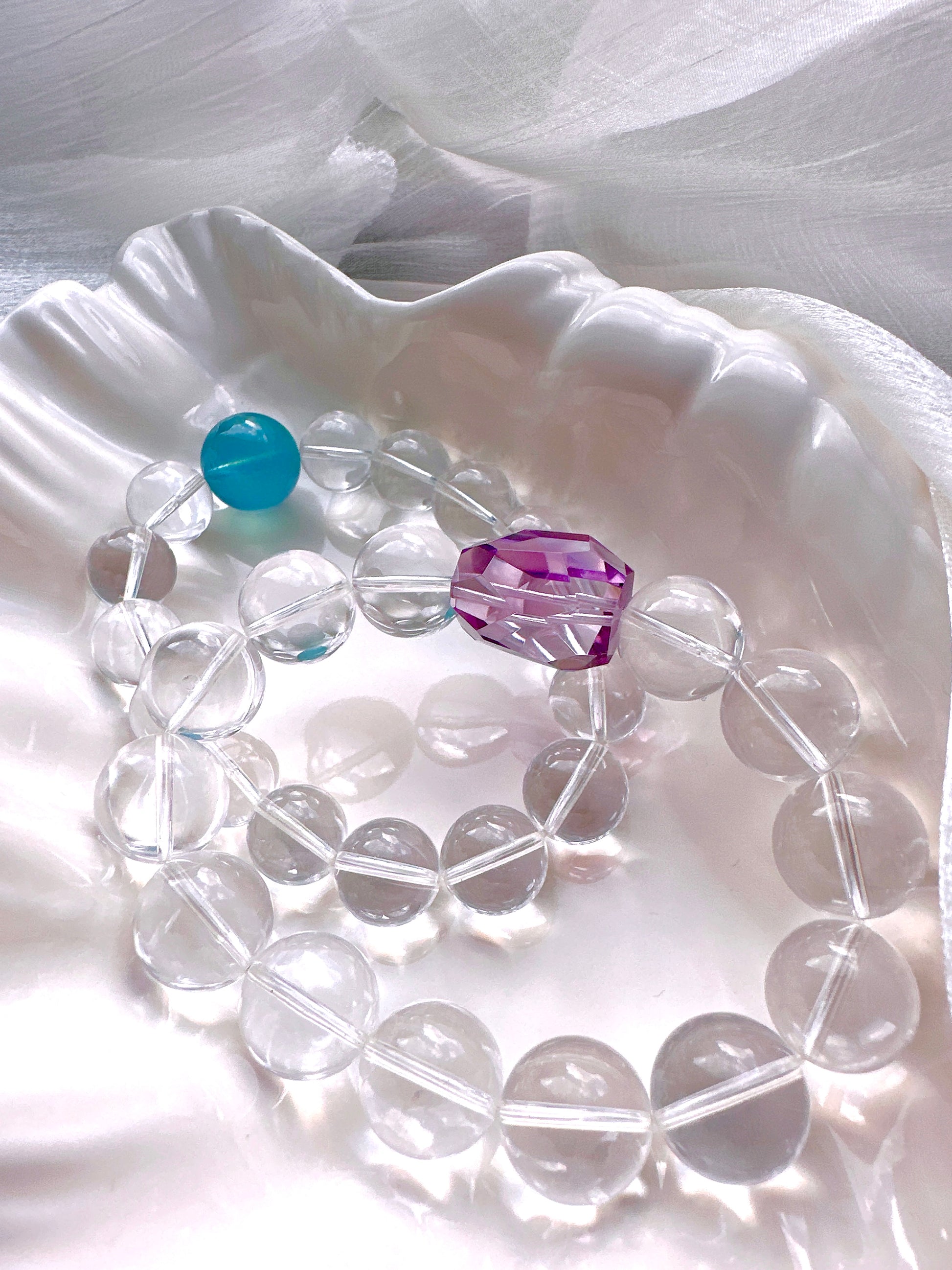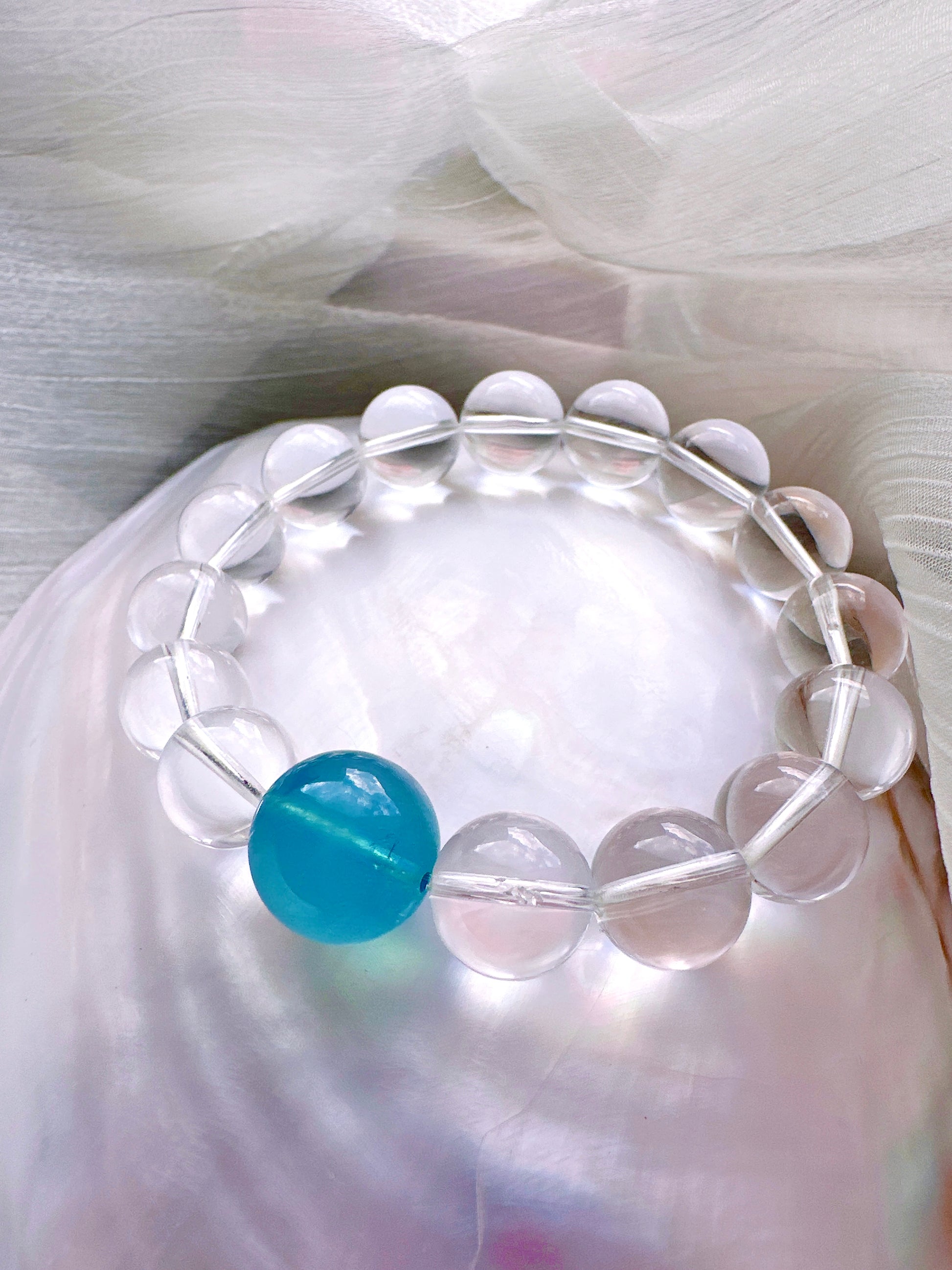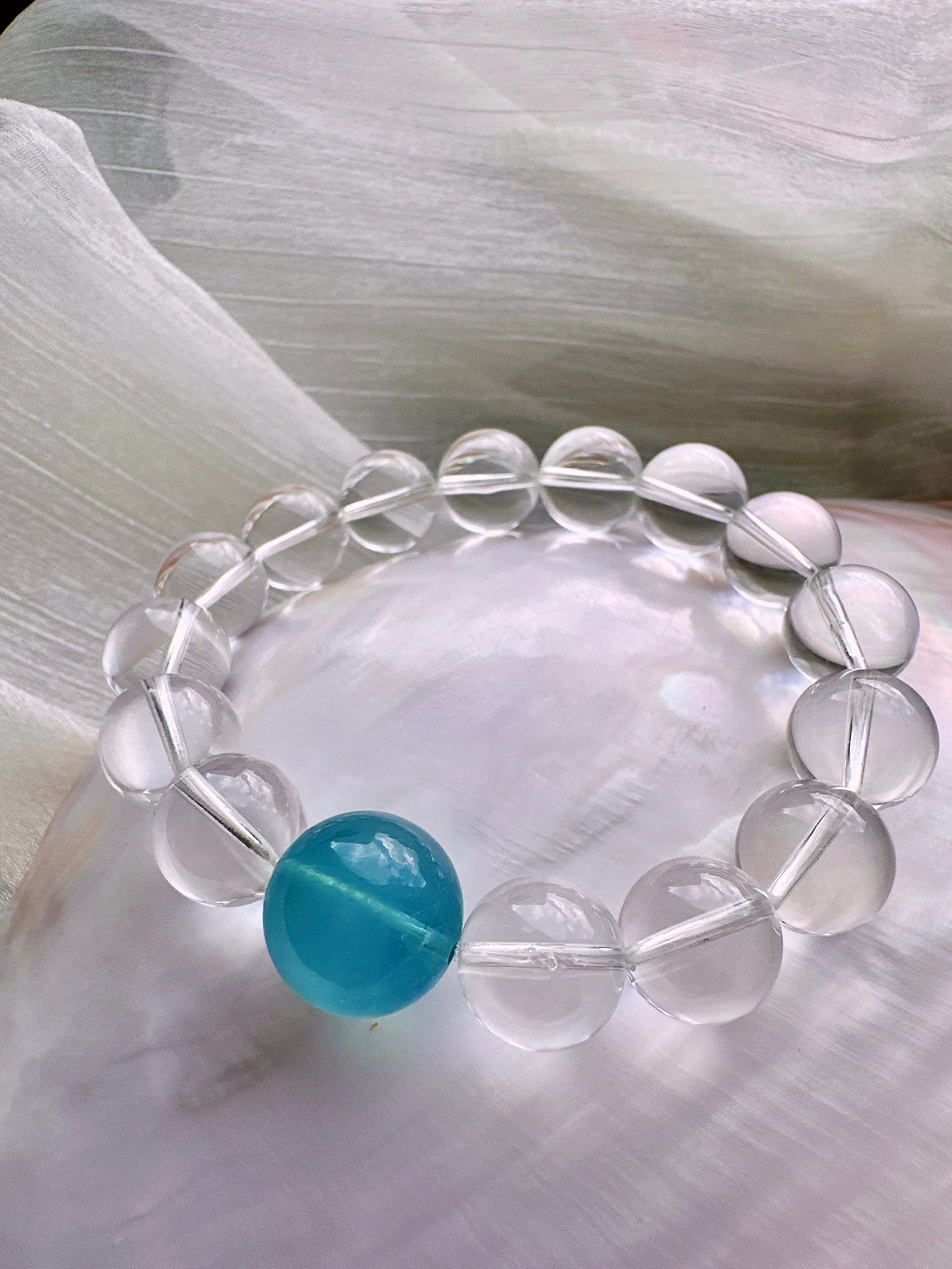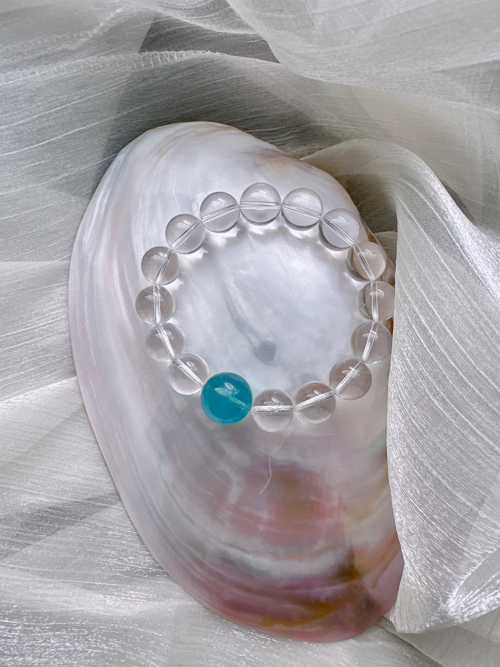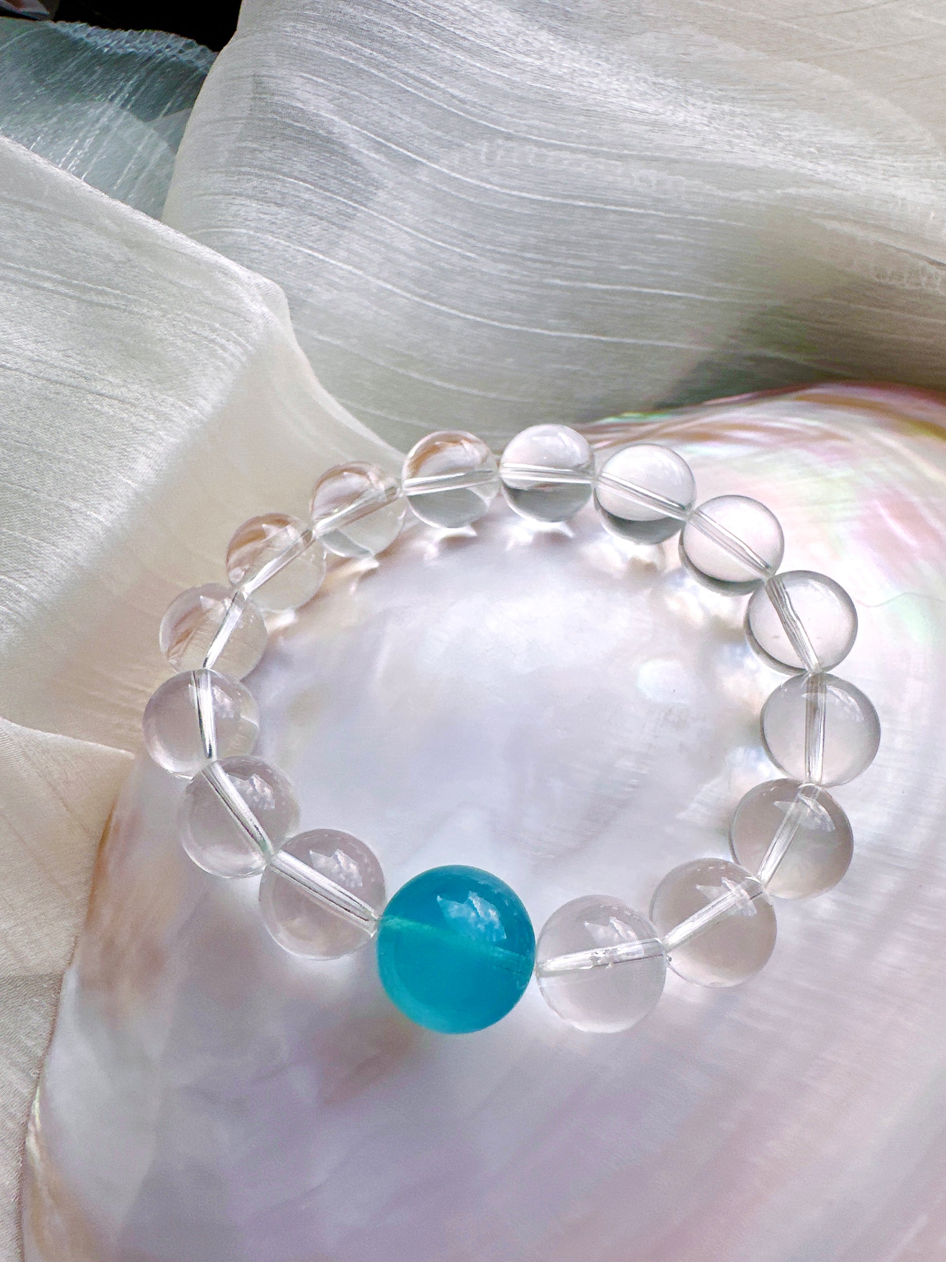 A crystal bracelet designed to bring calm, clarity, and emotional balance. Featuring Aquamarine paired with 15 AA Clear Quartz beads, this bracelet blends gentle ocean energy with clarity-enhancing crystals—perfect for promoting inner calm, focus, and emotional well-being.