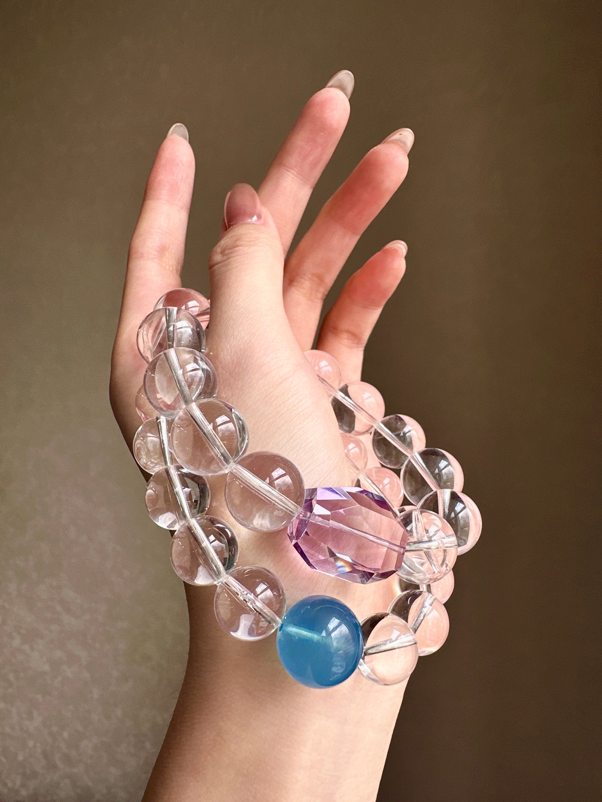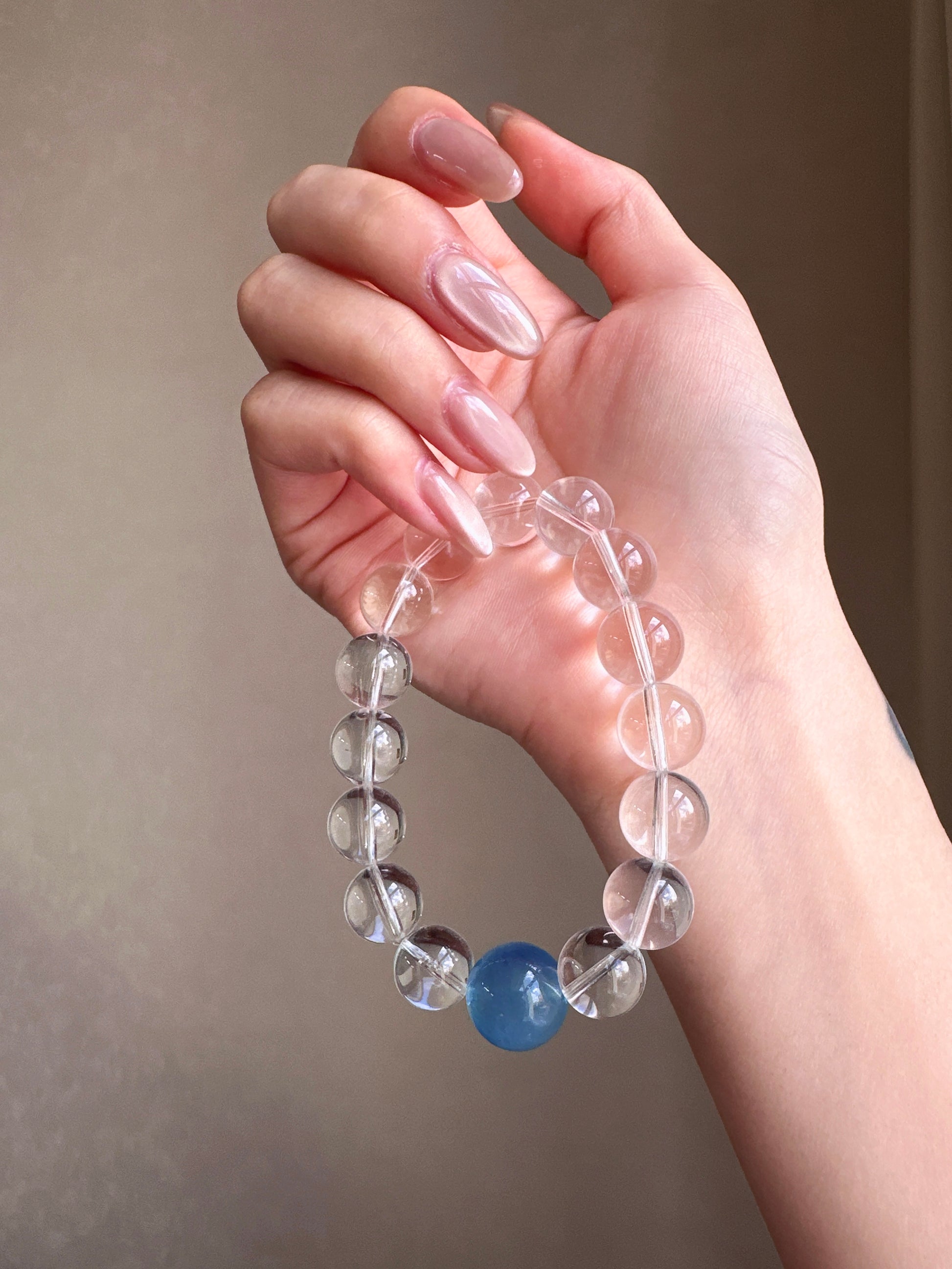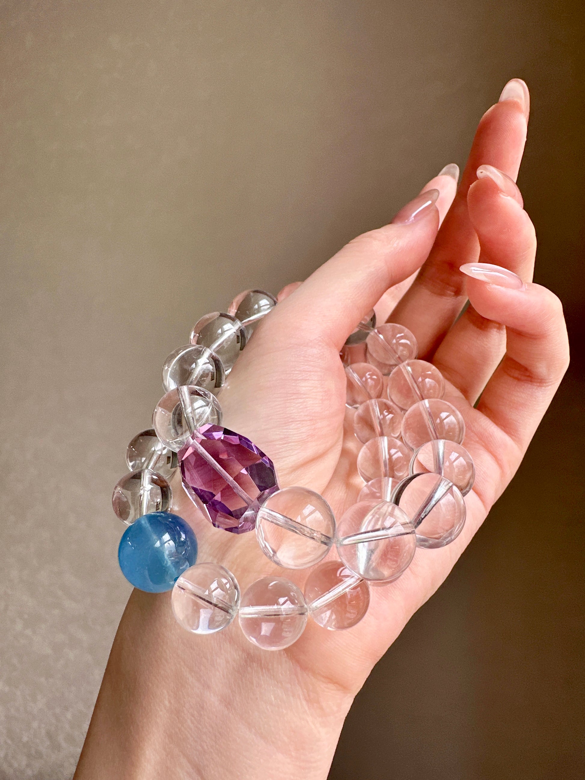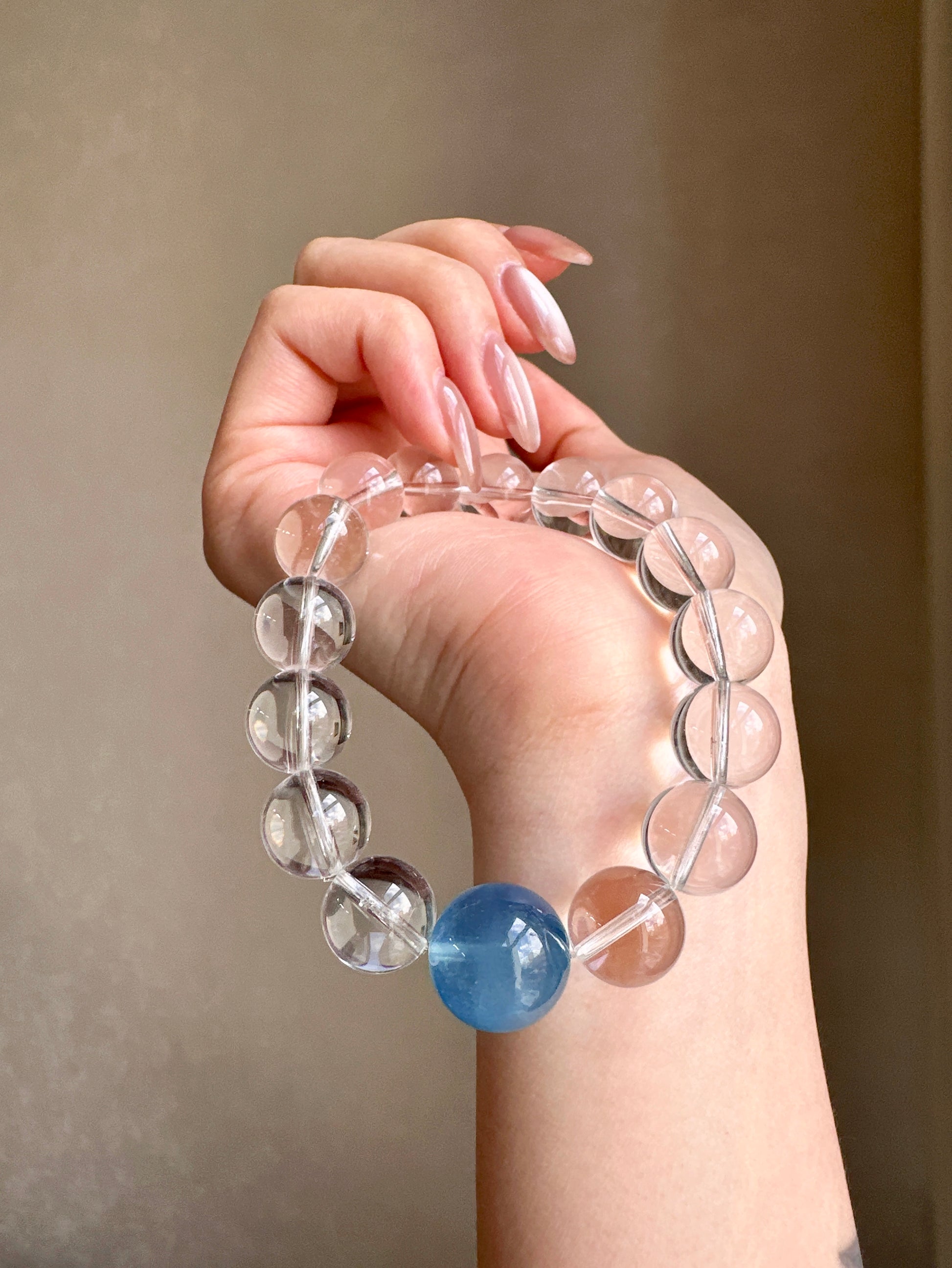 A crystal bracelet designed to bring calm, clarity, and emotional balance. Featuring Aquamarine paired with 15 AA Clear Quartz beads, this bracelet blends gentle ocean energy with clarity-enhancing crystals—perfect for promoting inner calm, focus, and emotional well-being.