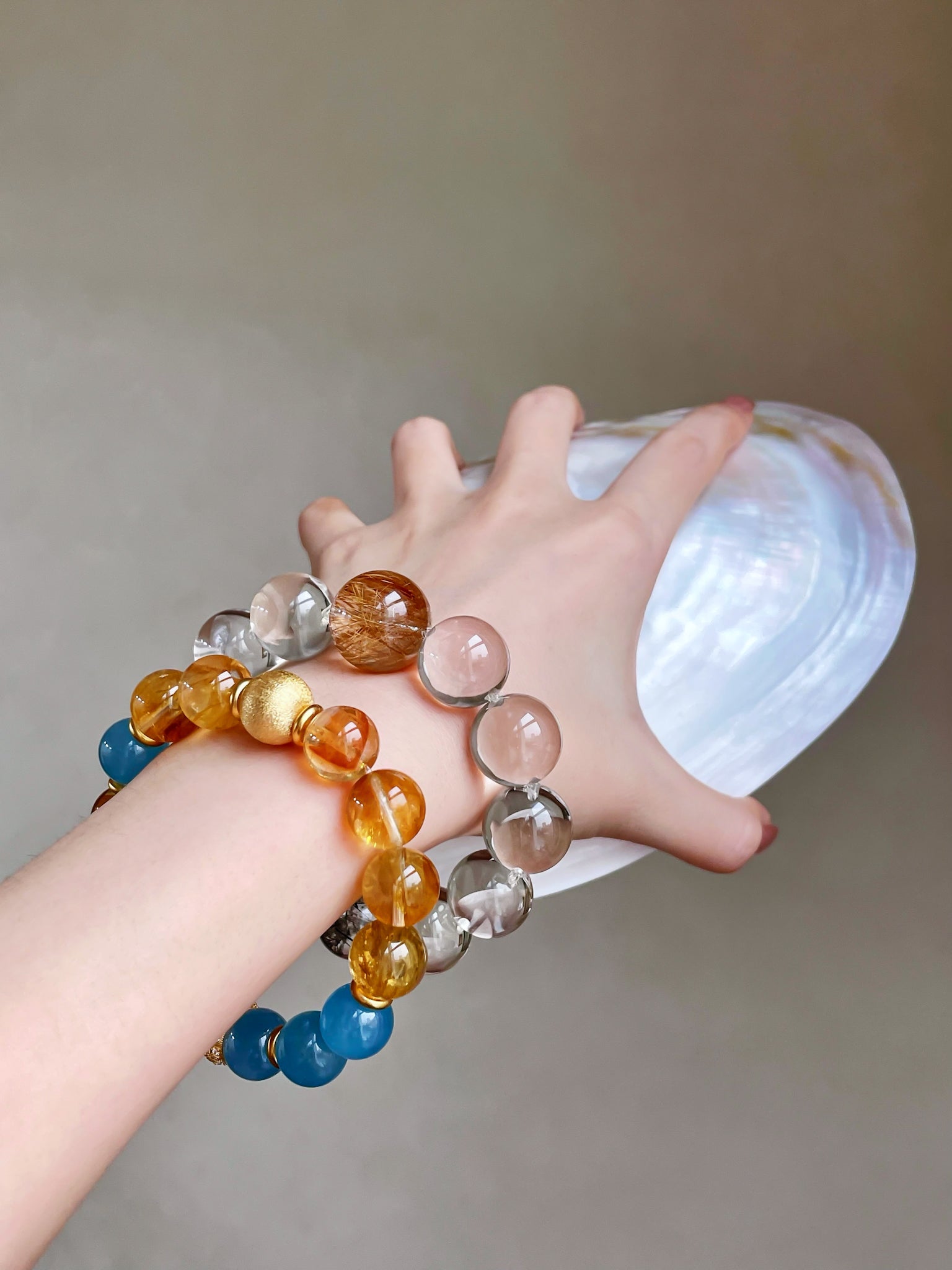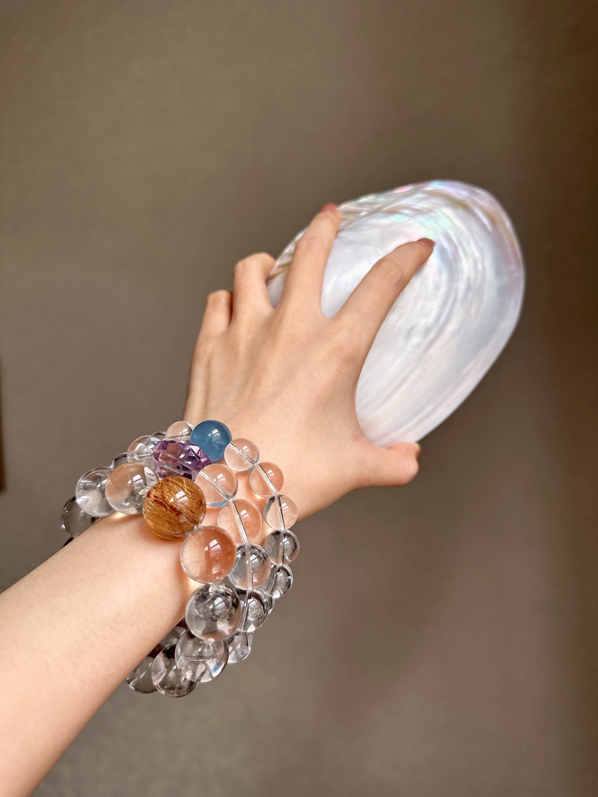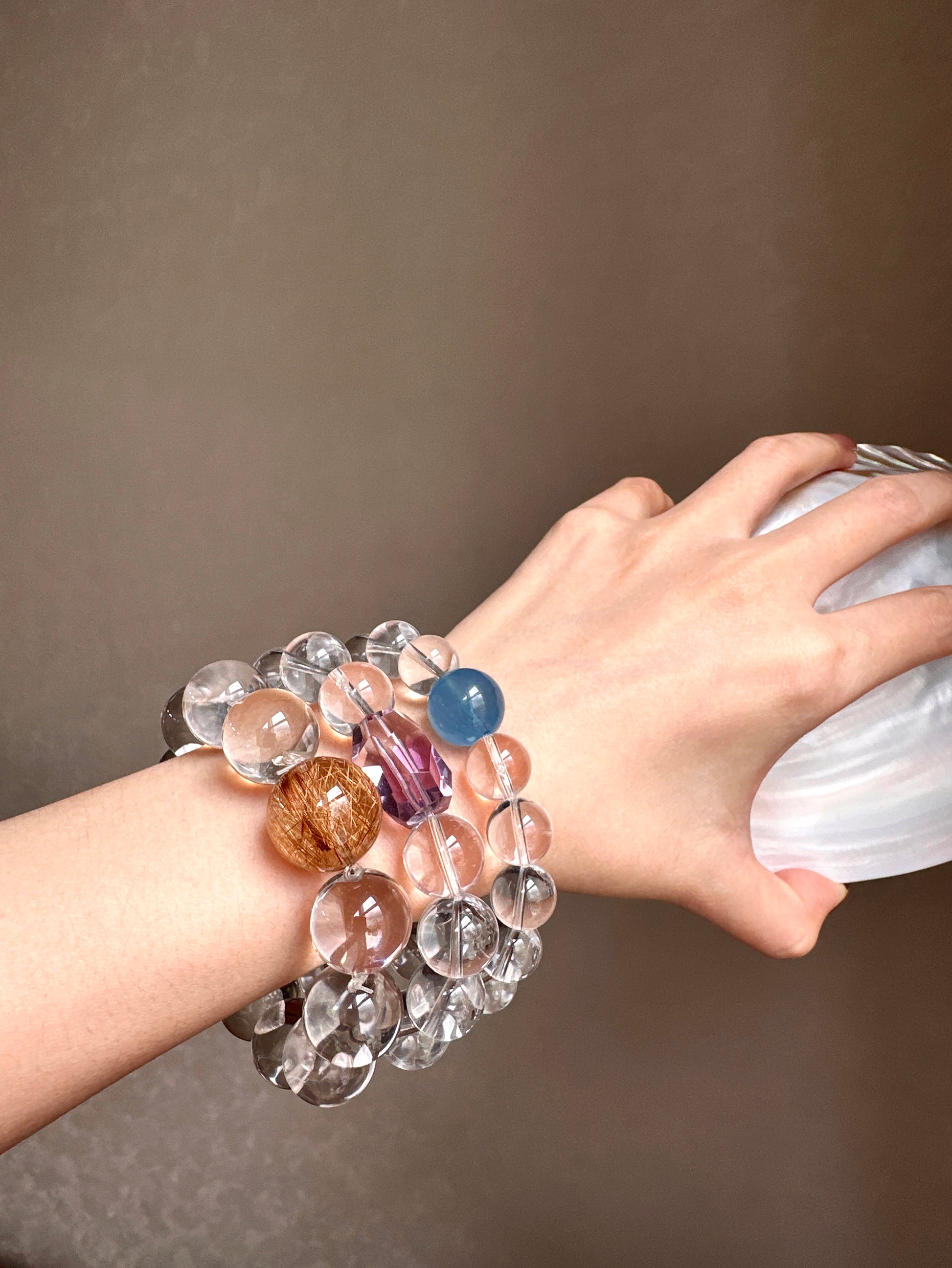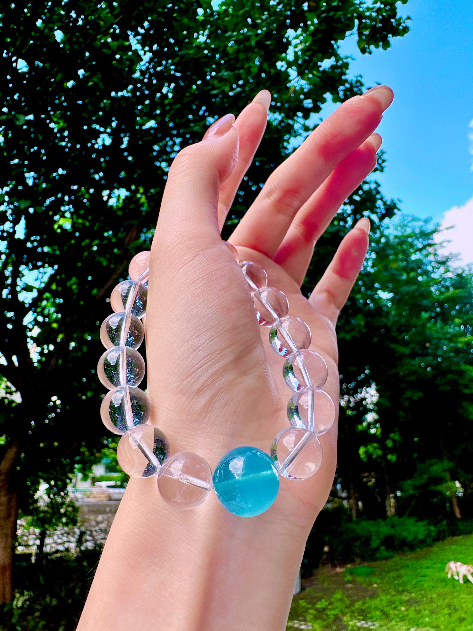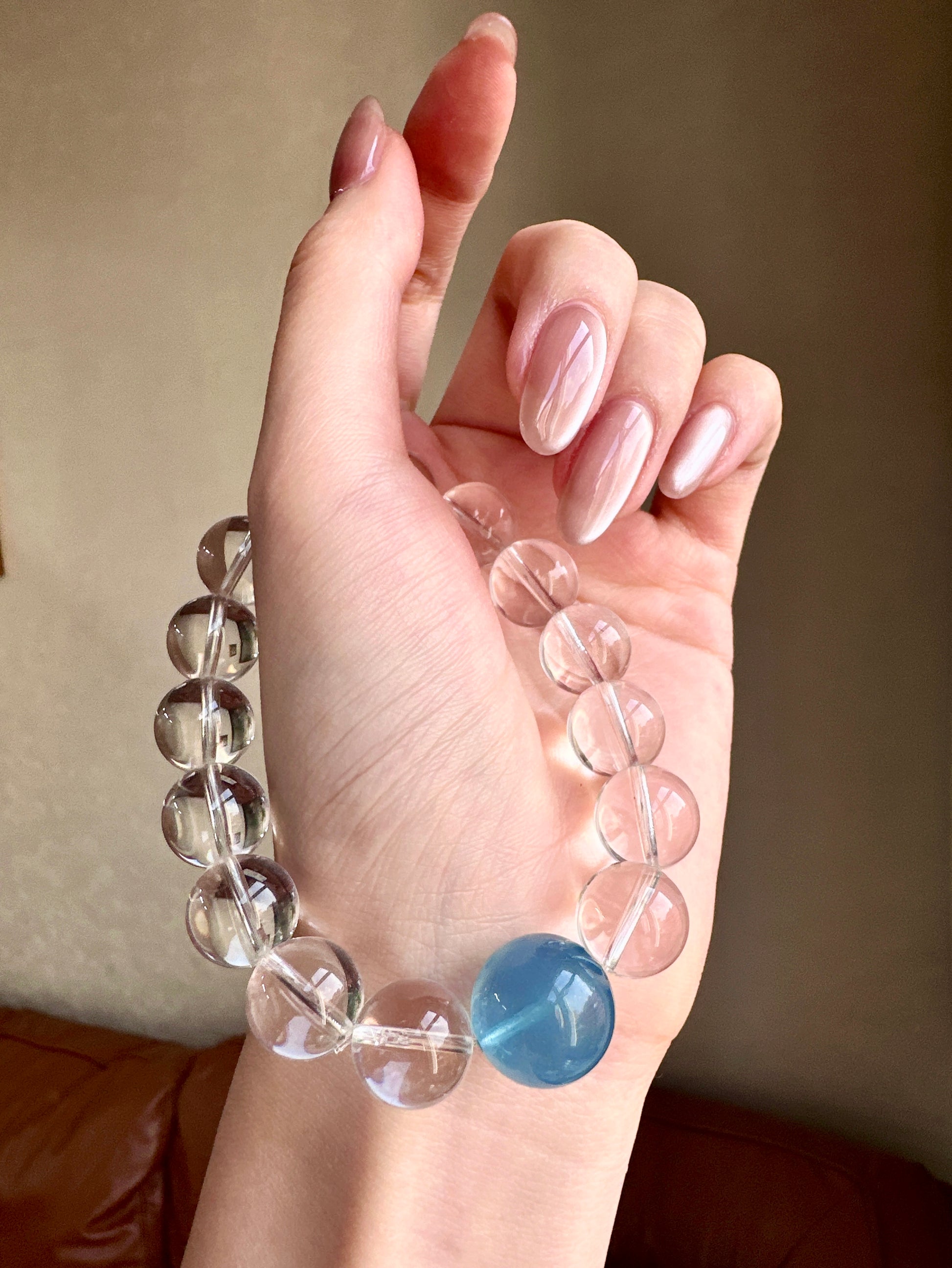 A crystal bracelet designed to bring calm, clarity, and emotional balance. Featuring Aquamarine paired with 15 AA Clear Quartz beads, this bracelet blends gentle ocean energy with clarity-enhancing crystals—perfect for promoting inner calm, focus, and emotional well-being.