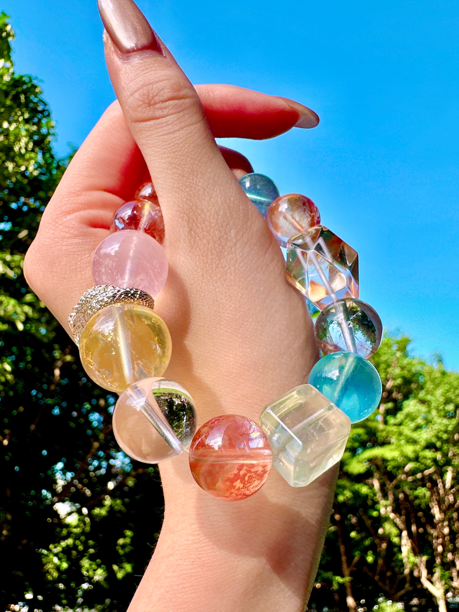 Rainbow crystals flow and interact, offering balance, vitality, and gentle five-element protection.
